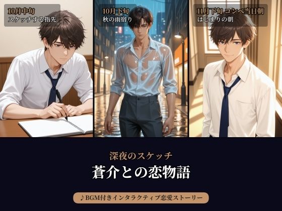FANZA同人で人気のTL漫画『深夜のスケッチ――・蒼介――甘く切ないラブストーリー。〜 一緒に戦った夜は、恋になる 〜【高品質AIイラスト+BGMで紡ぐ、インタラクティブ恋愛フォトストーリー】』の試し読みサンプルを紹介します!作者(サークル)は今話題の「beauty4ever」です。